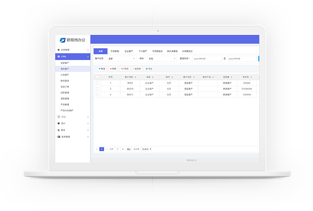企业/个人客户轻松管理,新增客户单独显示,实时跟进记录客户状态